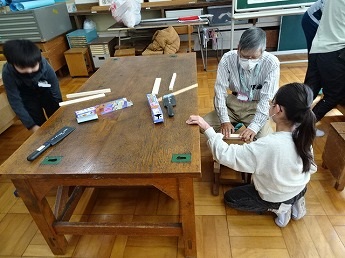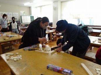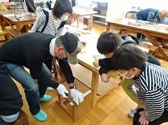 初めてのこぎりを使う子も多く、ボランティアさんたちに丁寧に教えていただきながらの制作となりました。