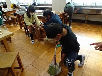 縦割り班で協力して、時間一杯、一生懸命働きました。学校がきれいになって、気持ちがよいです。