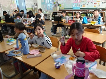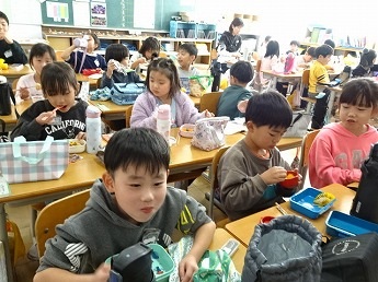 いつもより早起きをして、お弁当づくりをしてきた子、おかずを自分で詰めてきた子もいました。