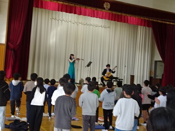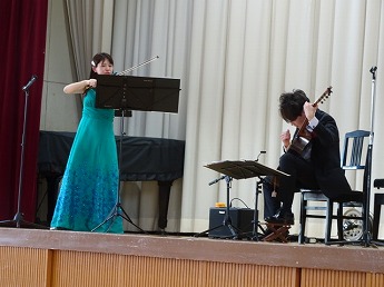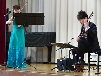 4・5・6年生がヴァイオリンとギターによる演奏を鑑賞しました。