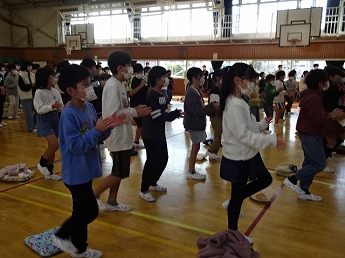 ぽかぽかとお日様の光があたたかな昼休みでした。長縄で何回跳べるか、クラスで挑戦していました。