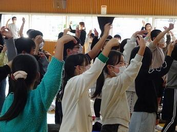 緊張もある中、「がんばるぞ!!」「オー!!」と、意気込みも十分です。