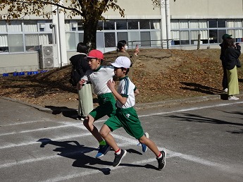 駅伝では、各学年3チームずつ出場し、襷をつなぎました。