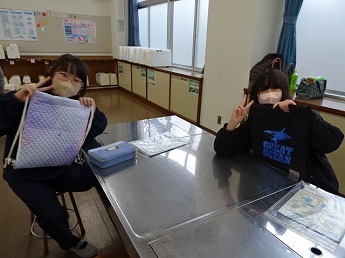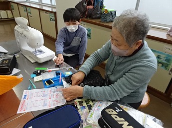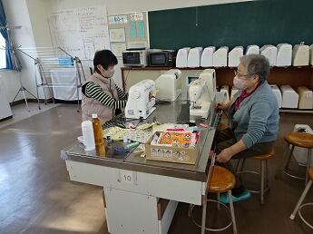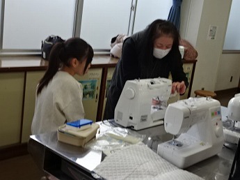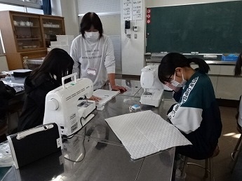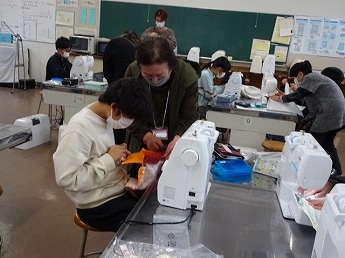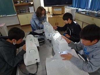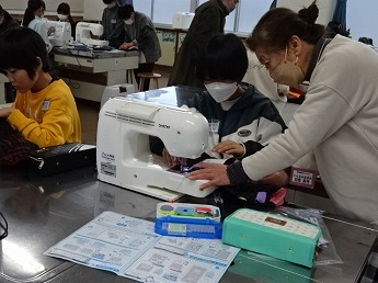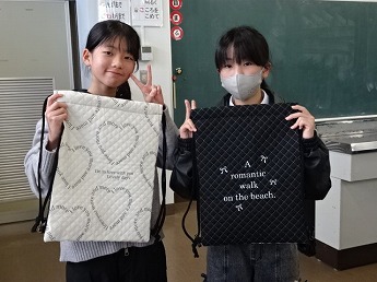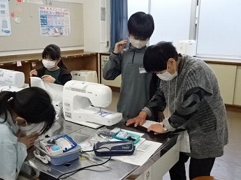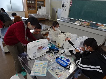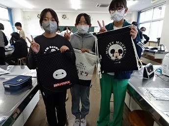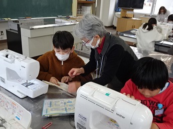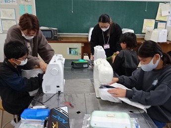 6年生がミシンを使って、ナップサックづくりに挑戦しました。