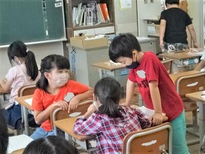 今日は、第1学期前半の終了日です。明日から、子どもたちが楽しみにしている「夏休み」が始まります。今日は、学習の場面もありますが、できるだけ「お楽しみ会」や「夏休みに向けた話や確認」の場面を中心にお伝えします。