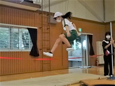 【1年生】夏休みが終わり、次の大きな学校行事と言えば「運動会」です。運動会に向けて、少しずつ準備が始まっています。1枚目の写真は、ラジオ体操のやり方を学習している様子で、2枚目の写真は、運動会の組み分けを行うために100mのタイムを測定している様子です。