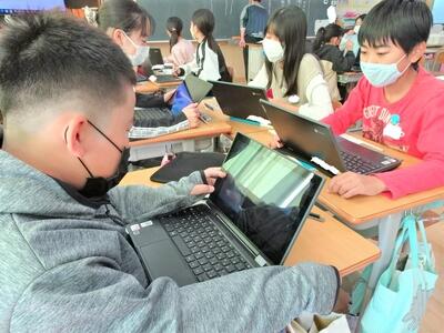 【4年生】今日は、パソコン関係の専門家をお呼びして、プログラミングの学習を行いました。今日は、日頃使用しているロイロノートを使った方法です。子どもたちは、話を聞き逃さないようにと、すごい集中力でした。