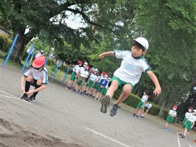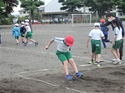 【5年生】2枚目の写真は、新体力テストの50m走のタイムを計っているところです。この後にボール投げの測定も行いました。今の自分の力を精一杯出そうとする姿が素晴らしいです。