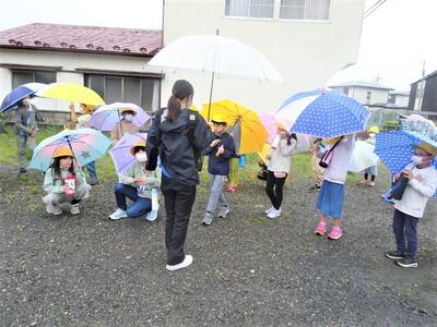【3年生の社会科「学校の周りの様子」の校外学習】3年生の社会科では、まずは学校の周りの様子から調べていきます。今日は、小雨の中でしたが、1クラスで実施しました。学校の西側の様子が分かりました。