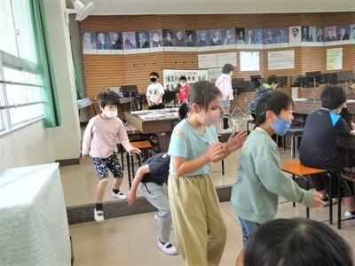 【5年生】今日は、どちらのクラスも音楽がありました。リズムの強弱に合わせて身体表現をしたり、オルガンにチャレンジしたりと、楽しむ様子が印象的でした。図工の鑑賞のカードづくりも、いろいろな感性があり興味深いです。