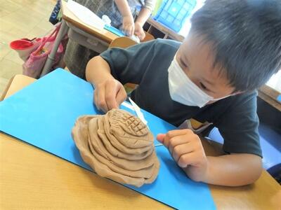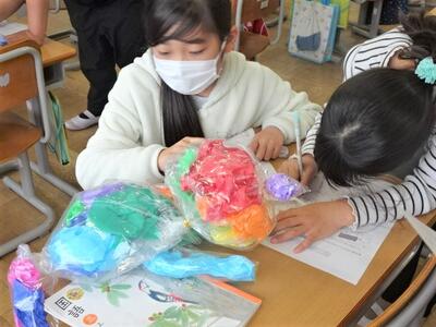 【3年生】1枚目の写真は、図画工作の「ねん土 マイタウン」の活動です。題名のとおり、粘土板の上に自分が考えた街が作られていきます。一人一人がいろいろな工夫をしていて、素晴らしい作品ができました。