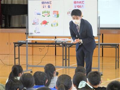 2時間目に「租税教室」を行いました。氏家税務署の専門家をお招きしてのお話です。税金がどのように役に立っているのか、私たちの生活が成り立つために必要なものであることを学びました。