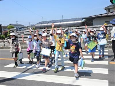【1~3年生】晴天の下、遠足に行きました。遠足については別にお知らせします。写真は、それぞれの出発前の様子です。
