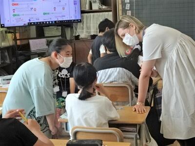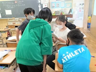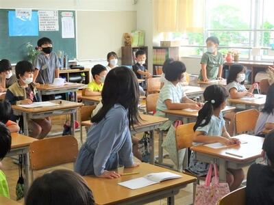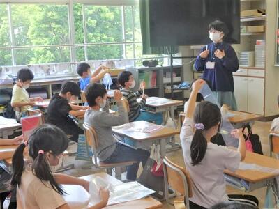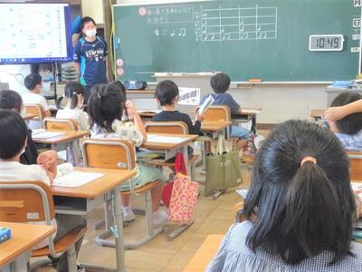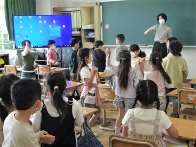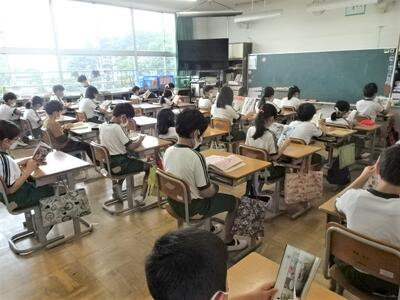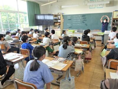 【4年生】もうすぐ夏休みです。1枚目の写真は、特別活動の時間に、お楽しみ会を行っている様子です。室内でのゲームの定番「フルーツバスケット」を行っていました。子どもたちも楽しそうです。クラスの結束も強まりますね。