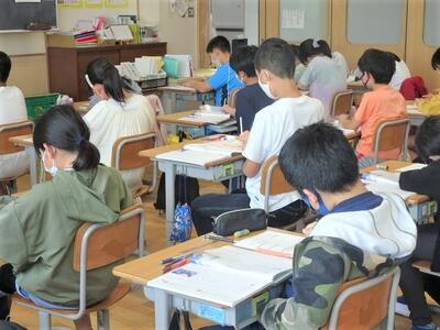 【4年生】いよいよ明日から一泊二日の宿泊学習です。今日は、そわそわしながらも学習にしっかり取り組んでいました。何人かに準備の話を聞いたら、もうできているという返事が聞こえました。明日、晴れるといいですね。