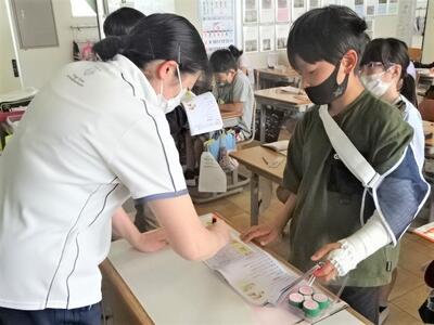 【2年生】2枚目の写真は、体力テストの握力の測定をしている様子です。1年生の時にも実施しているので、スムーズに実施していました。学習にも、運動にも集中しています。