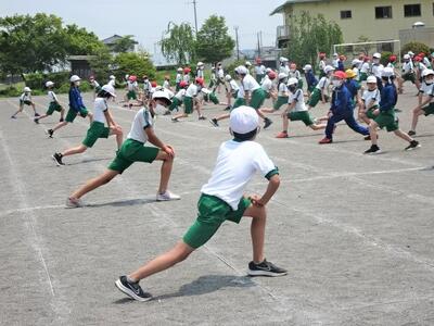 【校内陸上競技大会に向けて】5・6年生が、校内陸上競技大会にむけての練習を開始しました。