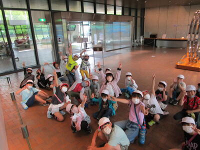 アクアマリンふくしまに到着しました。みんなとっても元気です。クラスごとに集合写真をして、班別の探索が始まりました。
