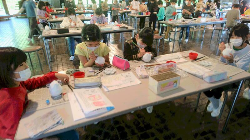 午後の活動は、フクロウの絵付けです。下絵を描き、色をつけ、オリジナルのフクロウが出来上がりました。