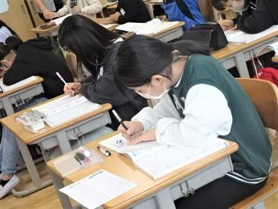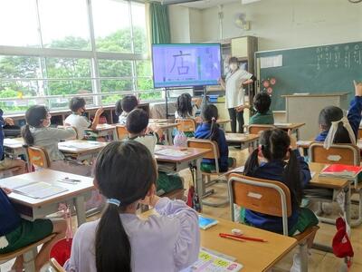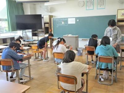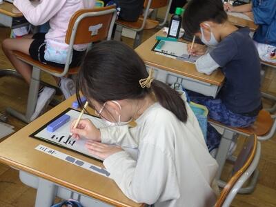 筆や硯を使った習字の学習は、3年生から始まります。本校では、3年生の書写の時間の何時間かを、専門家をお呼びして教えてもらっています。5月に6日(金)と9日(月)には、2時間ずつ早速専門家の先生に来ていただきました。この日は、道具一つ一つの使い方や片付けの仕方、筆の取り扱いなどについて教わりました。習字の学習の一番の基本です。子どもたちは、集中して姿勢良く、取り組んでいました。