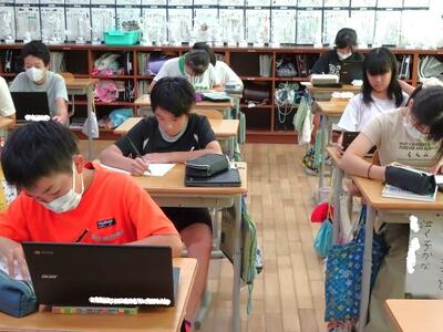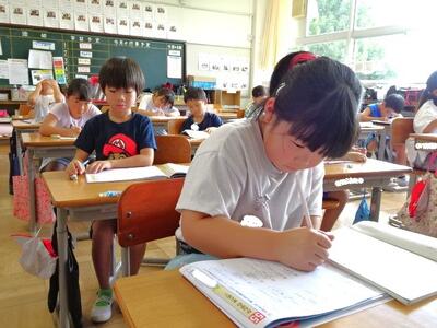 【3年生】今日から1学期の後半が始まります。夏休みの宿題を提出したり、思い出を伝え合った後は、さっそく授業に取り組んでいました。