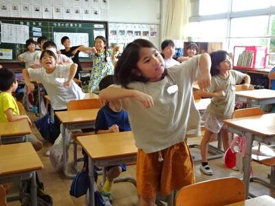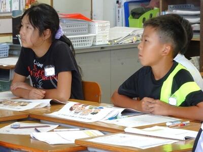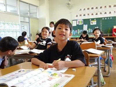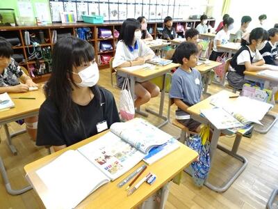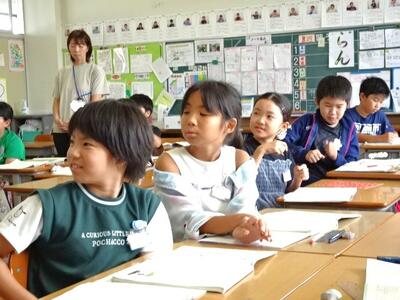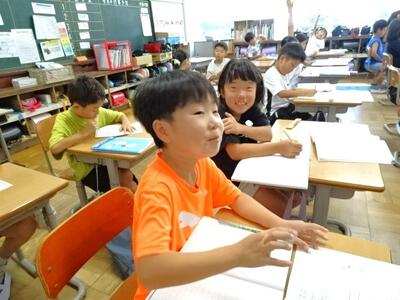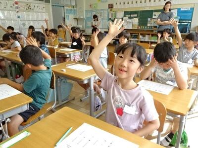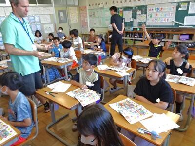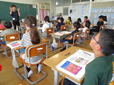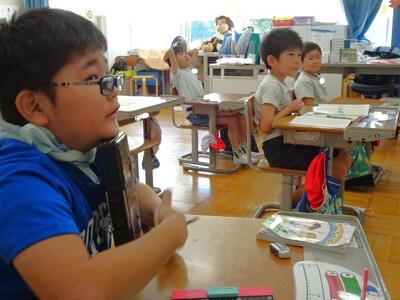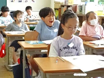 【4・5・6・7組】交流の学習も順調です。1枚目の写真は、英語活動に参加している様子です。