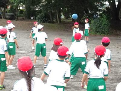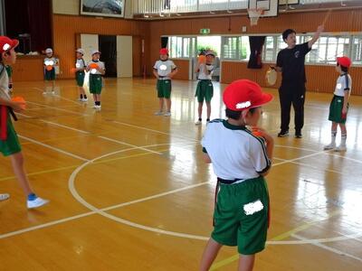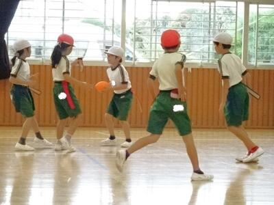 【4年生】1枚目の写真は、ネット型のゲーム「プレルボール」の活動の様子です。ボールをバウンドさせるために、どうするとやりやすいかを学んでいます。ボールのバウンドはなかなか難しいのですね。