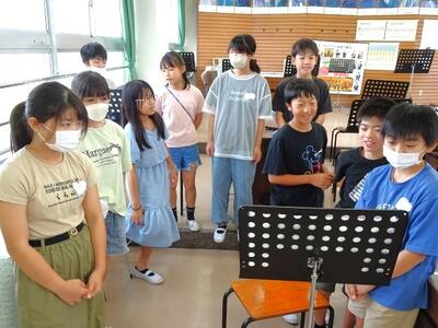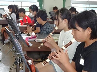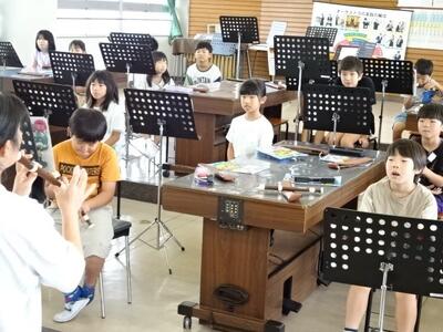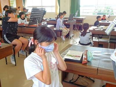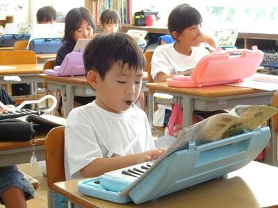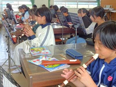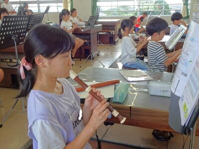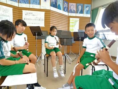 【4年生】1枚目の写真は、音楽の「めざせ 楽器名人」の学習の様子です。音楽室に入ったら、「もののけ姫」のリコーダー練習を熱心に行っていました。素敵な音色です。