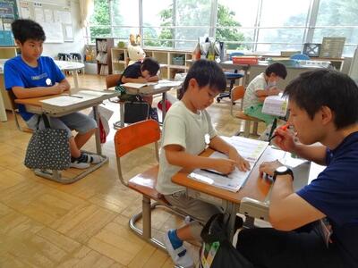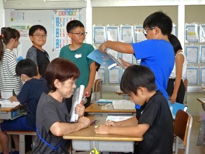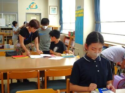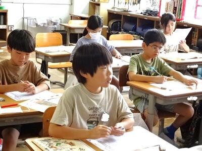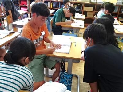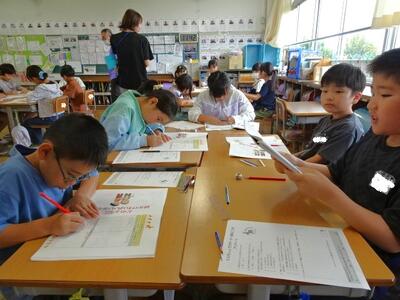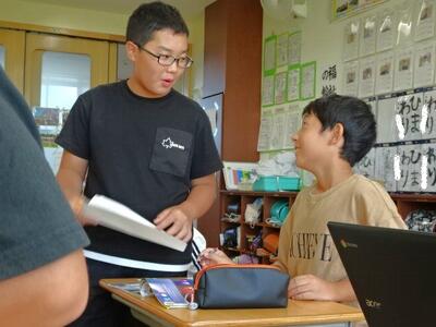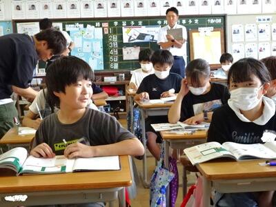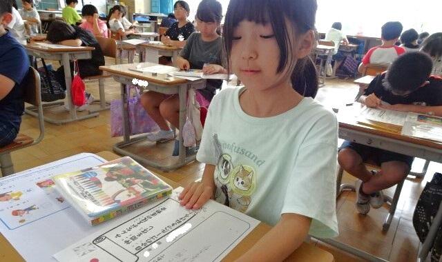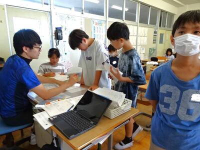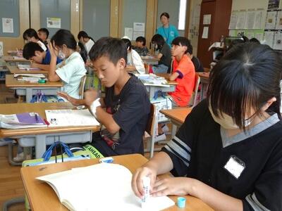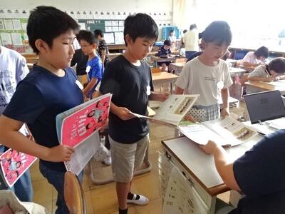 【6年生】6年生の教室には朝の早い時間帯に行きました。ちょうど、夏休みの宿題を提出している場面でした。みんな自信ありげな表情で提出していました。また、新しい教科書を各教室に届けるのも、6年生がしっかりと行ってくれました。ありがとう。