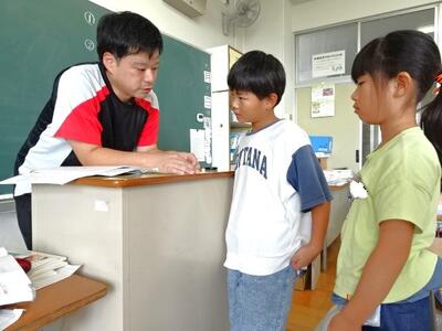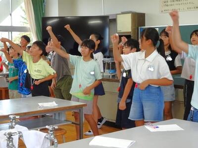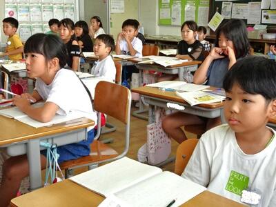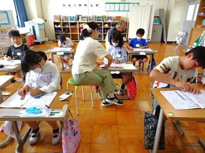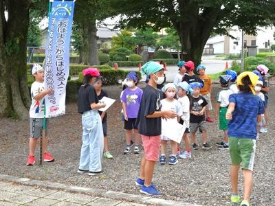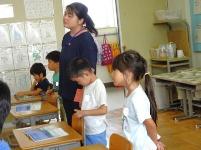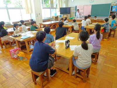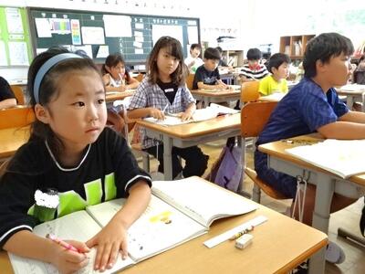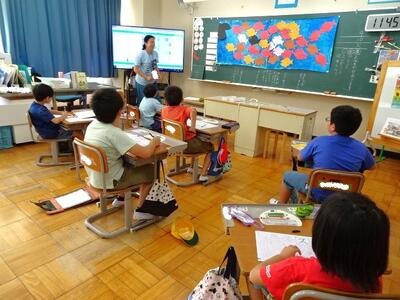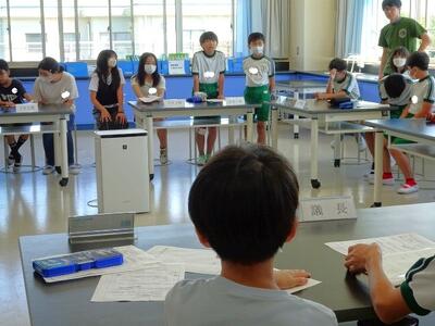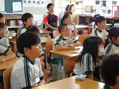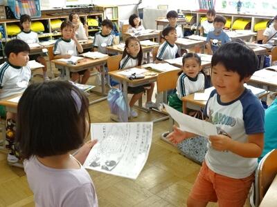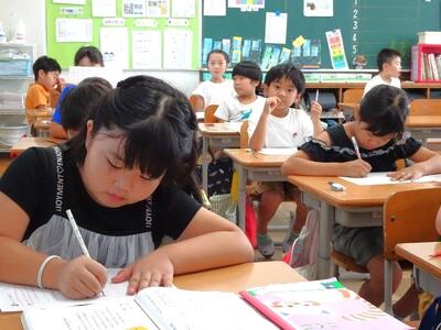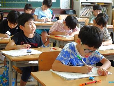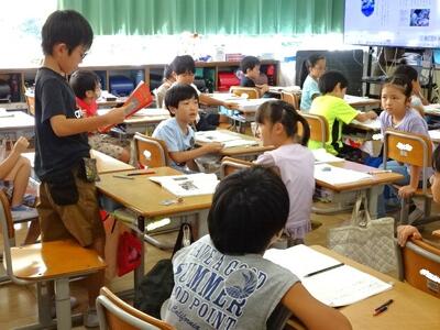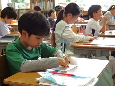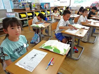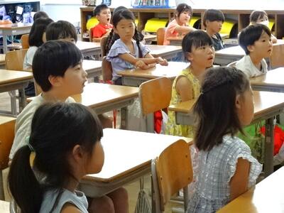 10月11日(金)の4校時に、第1学期の終業式を行いました。学校長の話と、3人の児童代表の子どもたちが1学期の反省と2学期の抱負についての作文発表がありました。また、終了後には、サッカーの大会や読書感想文コンクール、地域安全マップコンクールの表彰を行いました。