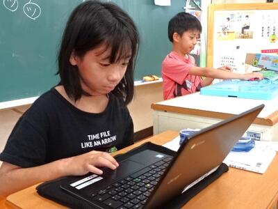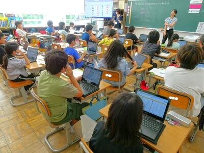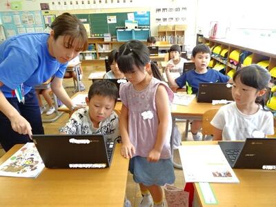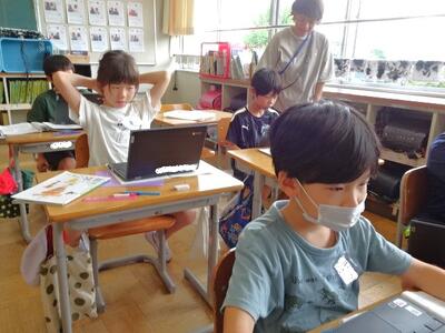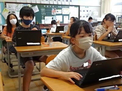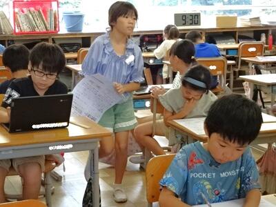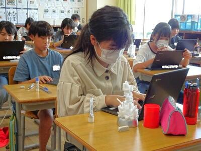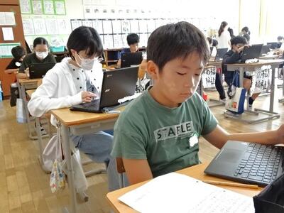 【3年生】1枚目の写真は、国語の「ローマ字」の学習の様子です。みんなパソコンのキーボードをすごい勢いでたたいています。子どもたちは、ローマ字になれるが早いですね。