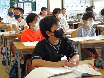 【5年生】いよいよ宿泊学習が来週に迫ってきました。今日は、保健指導について養護の先生の話を聞きました。これから大人の体になっている年頃です。しっかりと話を聞くことができました。