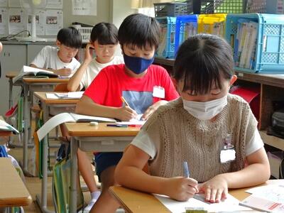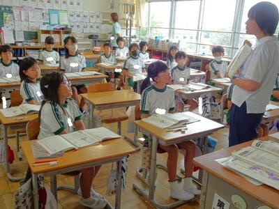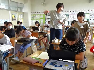 【3年生】1枚目の写真は、国語の「ちいちゃんのかげおくり」の学習の様子です。少し昔の時代背景なので、分からない言葉の整理をして、イメージできるように工夫しています。