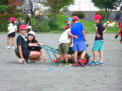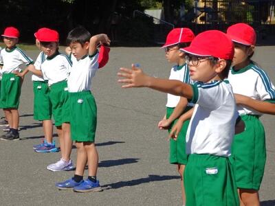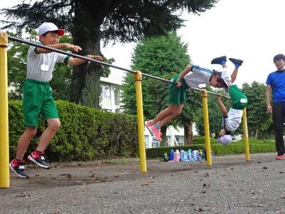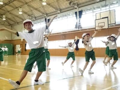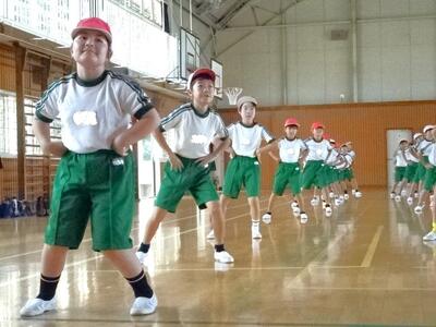 【4年生】1枚目の写真は、運動会の練習の様子です。これまで、団体競技やダンスの練習を中心に行ってきました。4年生単独で行う障害走の練習を行いました。