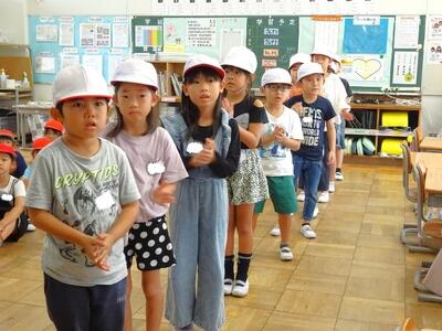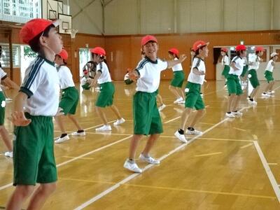 【5年生】この時期になって雨天が続いています。運動会は日にち的にはまだなのですが、秋休みを挟むので練習する日数はあまりありません。今日は、まだ練習していなかった徒競走の並び順を確認しました。