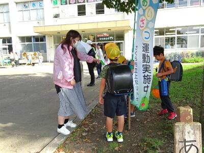 秋の交通安全県民総ぐるみ運動に伴って、本校でも先生方が立哨指導を行い、子どもたちの安全な登校を見守りました。地域の安全パトロール隊の皆様、交通指導員の皆様には、旗当番等で立哨してくださっている保護者の皆様、いつもありがとうございます。