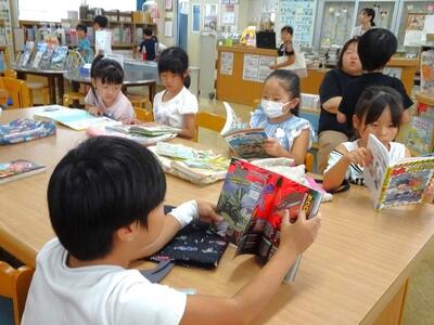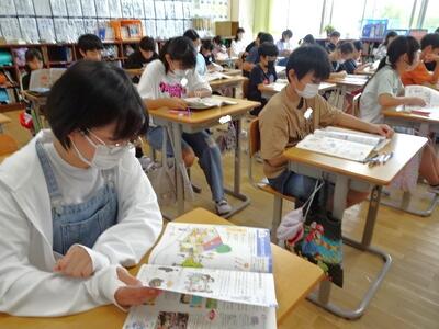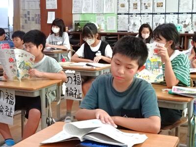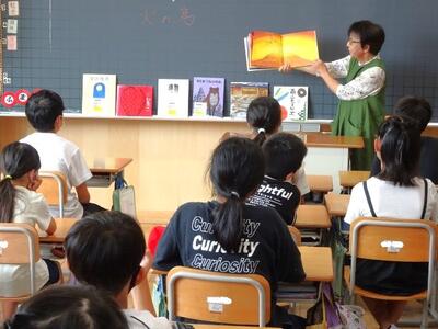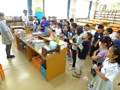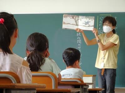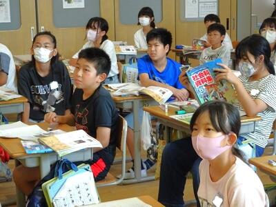 【4・5・6・7組】1枚目の写真は、ブックトークをしている様子です。自分が選んだ本を、理由を付けて紹介していました。