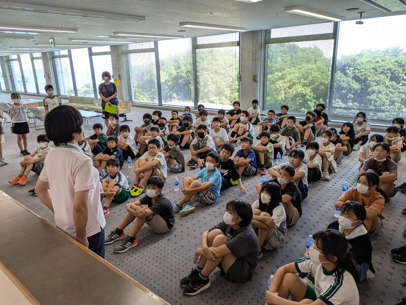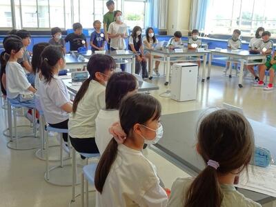 【5年生】5年生の教室にだれもいなかったので、探してみたら学習室に集まって真剣に話を聞いているところでした。海浜自然の家への宿泊学習が迫っています。今日は、全体で決まりなどについて知りました。