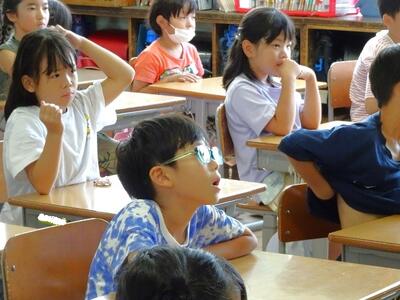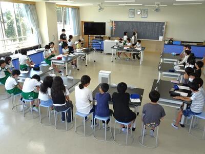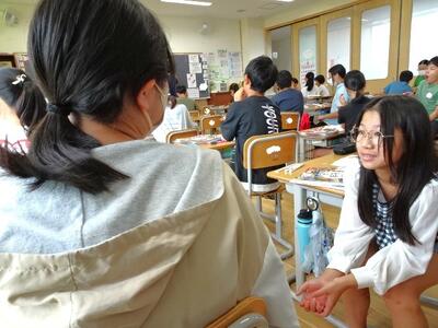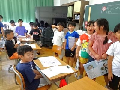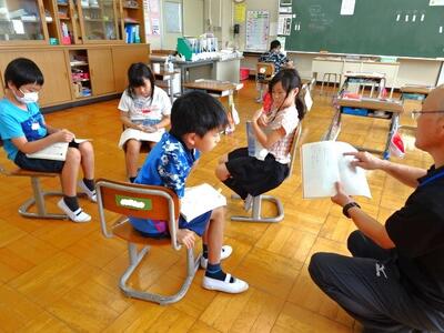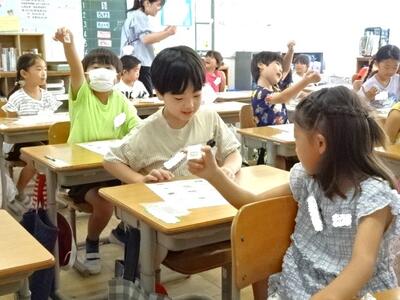 【4・5・6・7組】楽しい夏の思い出を語り合いました。いろいろな質問をしながら、お互いの表情を確認し合いました。