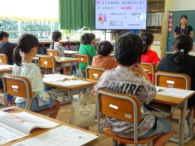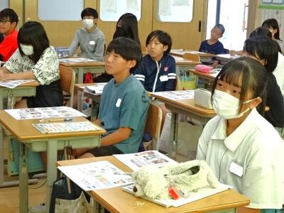 【4年生】1枚目の写真は、総合的な学習の時間の一コマです。4年生は福祉の学習をしています。今日から「認知症サポーター講座」をクラスごとに受講します。