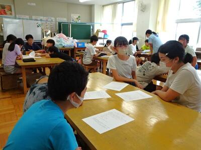 【5年生】5年生は、もう少しでとちぎ海浜自然の家への宿泊学習があります。宿題提出や確かめのテスト、身体計測の合間に、宿泊学習での役割分担が始まりました。