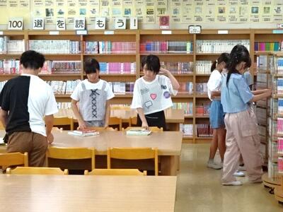 【2年生】1枚目の写真は、来週のすきま読書用の本を選んでいる様子です。図書室に入ると、みんな自分が読みたいジャンルの棚の方へちらばっていきます。お気に入りの本をゲットできたなか?