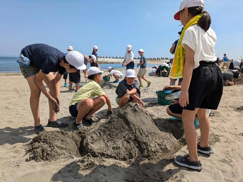 【4・5・6・7組】教室の南側のカーテンが揺れている様子から、海に似ていることに気づきました。みんなでスイミーの世界を作ることに挑戦しています。