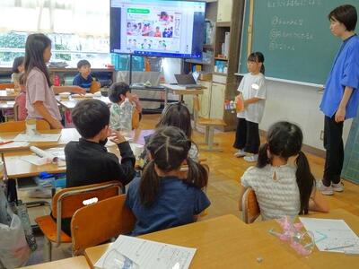 【2年生】夏休みの思い出や出来事を、お互いに発表し合います。クラス全体で共有したり、グループの中で発表したりして、楽しい夏休みを振り返りました。