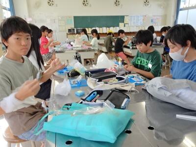 5年生の家庭科「ひと針に心をこめて」の学習で、小物作りを行っています。10月10日(木)には、手縫いボランティアの皆様に来ていただき、針の使い方や縫い方などの助言をいただきました。