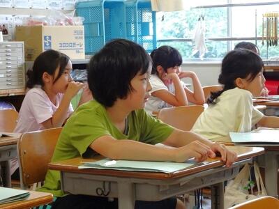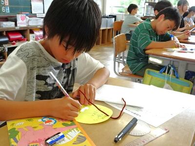 【4・5・6・7組】夏休みといえば、日課表などの計画作りを思い出します。1枚目の写真は、まさに夏休みの計画を立てている場面です。