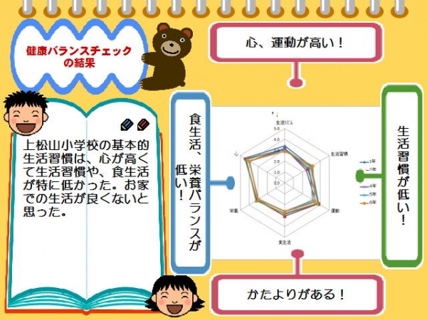 今日第2回の学校保健委員会が開催され、19名(保護者15名+氏家中学校養護教諭+校医)が方が外部より参加いただきました。今日のテーマは「どんどん食べて どんどん使おう 食事の工夫」です。過日実施した健康バランスチェック結果を中心に児童保健委員会の発表(よくできました)、校医の先生のコメント、グループ協議が行われました。約60分でしたが実のある時間となりました。ご出席の皆さん、児童保健委員のみんなありがとうございました。資料(健康バランスチェック結果)を別ページに添付してあります。ご覧ください。