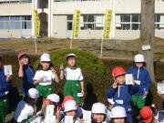 ★のぼり旗で持久走大会をちょっと盛り上げています。1年生も最後の練習です。