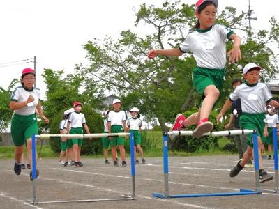 【5年生】1枚目の写真は、体育の「短距離走リレー」の活動の様子です。テイクオーバーゾーンを使ったバトンパスも、少しずつ身に付いてきたようです。