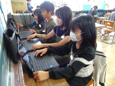 【5年生】1枚目の写真は、図画工作の時間の様子です。ICTチャレンジの学習で、タブレットPCを使ってコマドリを行い、ミニアニメーション作りに挑戦しました。